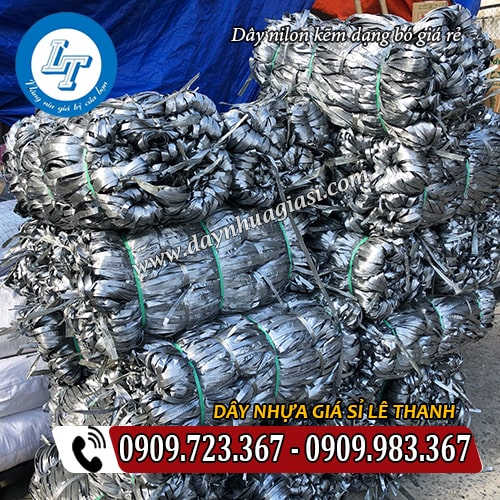 - Dây nilon kẽm khô (dây nilon kẽm bản nhỏ) có mỗi bó nhỏ nặng 1kg và đóng thành bó lớn 10kg hoặc 25kg gọn gàng. Sau đó, sẽ được ràng cố định ở 2 đầu bằng một sợi dây nilon nên người dùng sẽ không hề lo dây bị bung xổ trong quá trình luân chuyển.