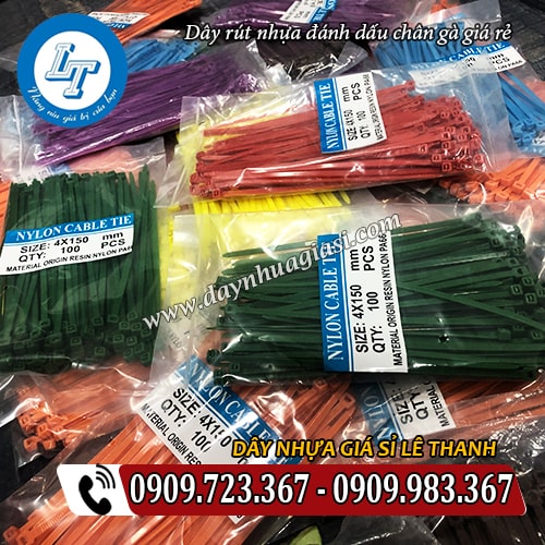 - Dây rút nhựa đủ màu giúp người quản lý trại giống gia cầm sẽ dễ dàng trong việc đánh dấu, thao tác công việc trở nên nhanh gọn hơn và có tác dụng phân biệt các độ tuổi khác nhau của từng lứa gà, vịt, chim,…
